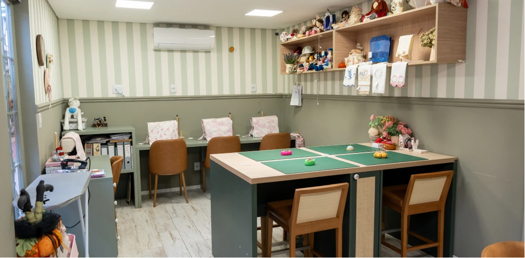 Nosso ateliê é um refúgio de criatividade e afeto. Um espaço onde o tempo desacelera, as mãos criam e o coração se acalma. Cada detalhe foi pensado para acolher, inspirar e transformar momentos simples em experiências cheias de significado. Aqui, criar é também cuidar.